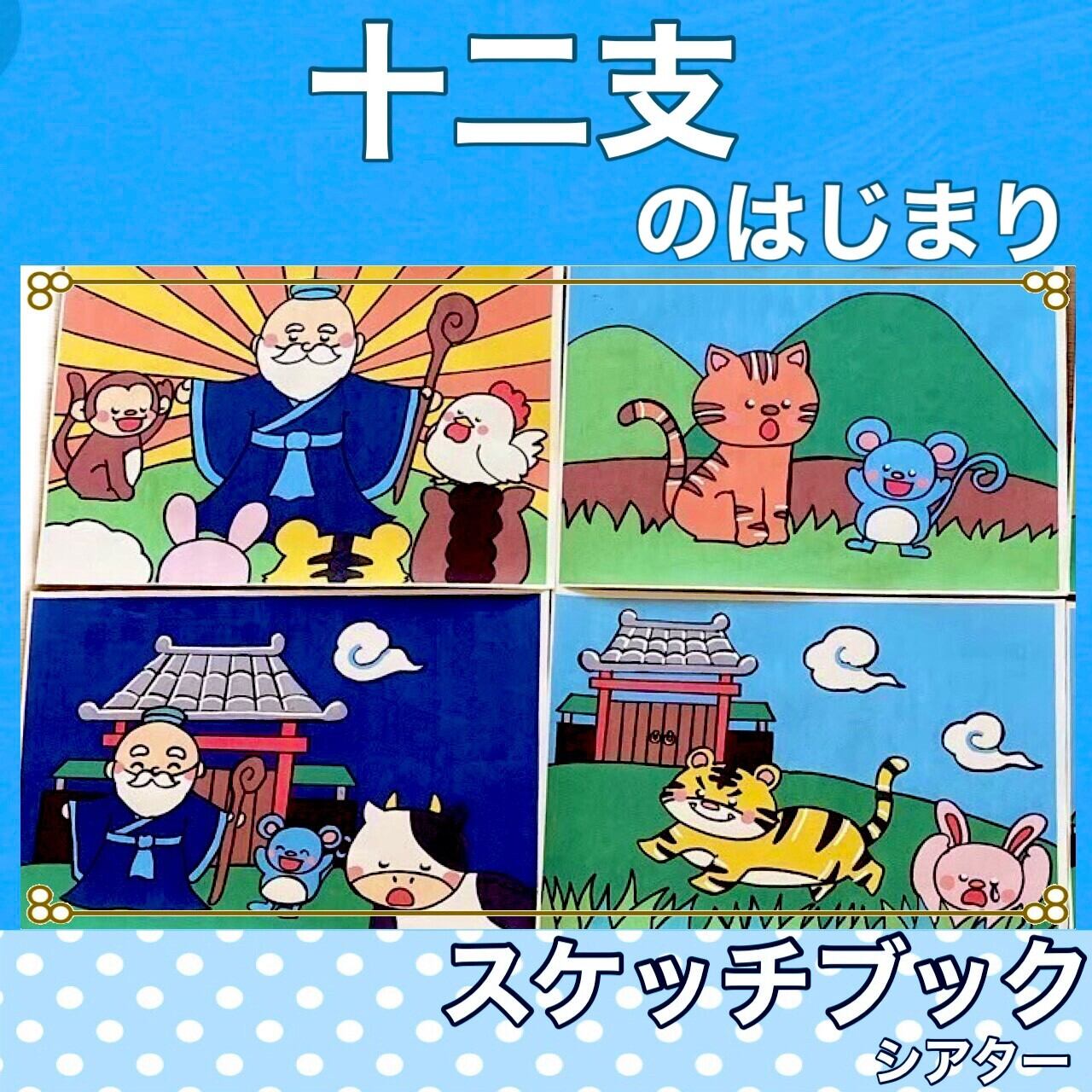 新作 十二支のはじまり スケッチブックシアター 紙芝居風 台本つき お話 12支 干支