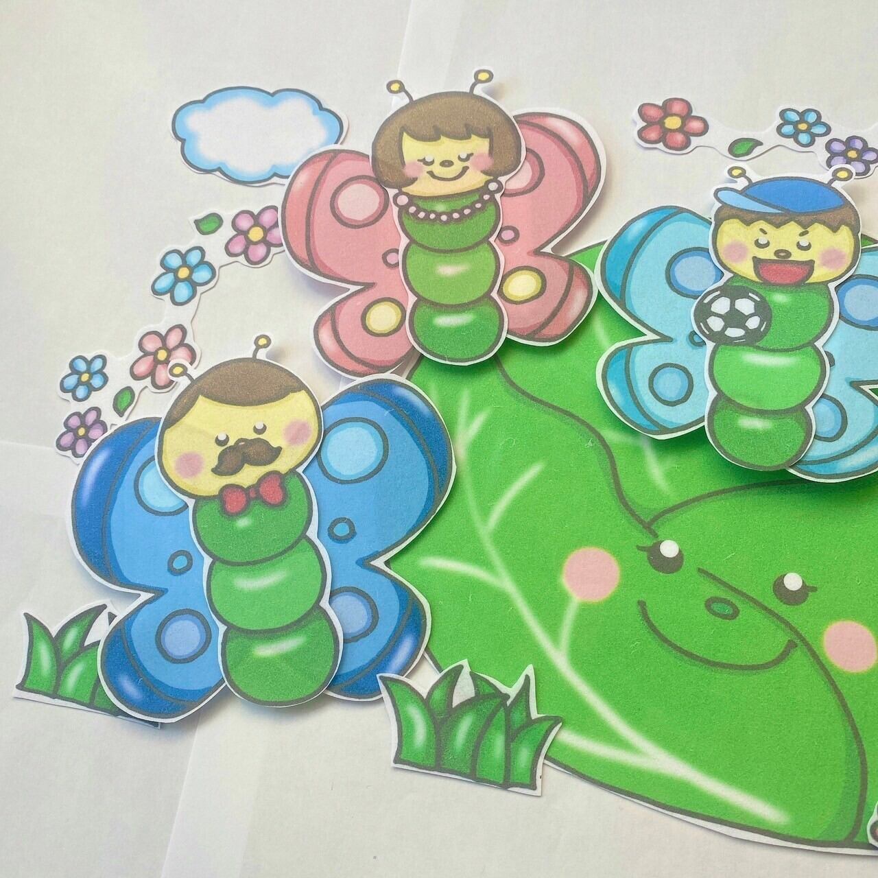 キャベツから、ひょっこり出てくるあおむしたちがかわいい作品です!