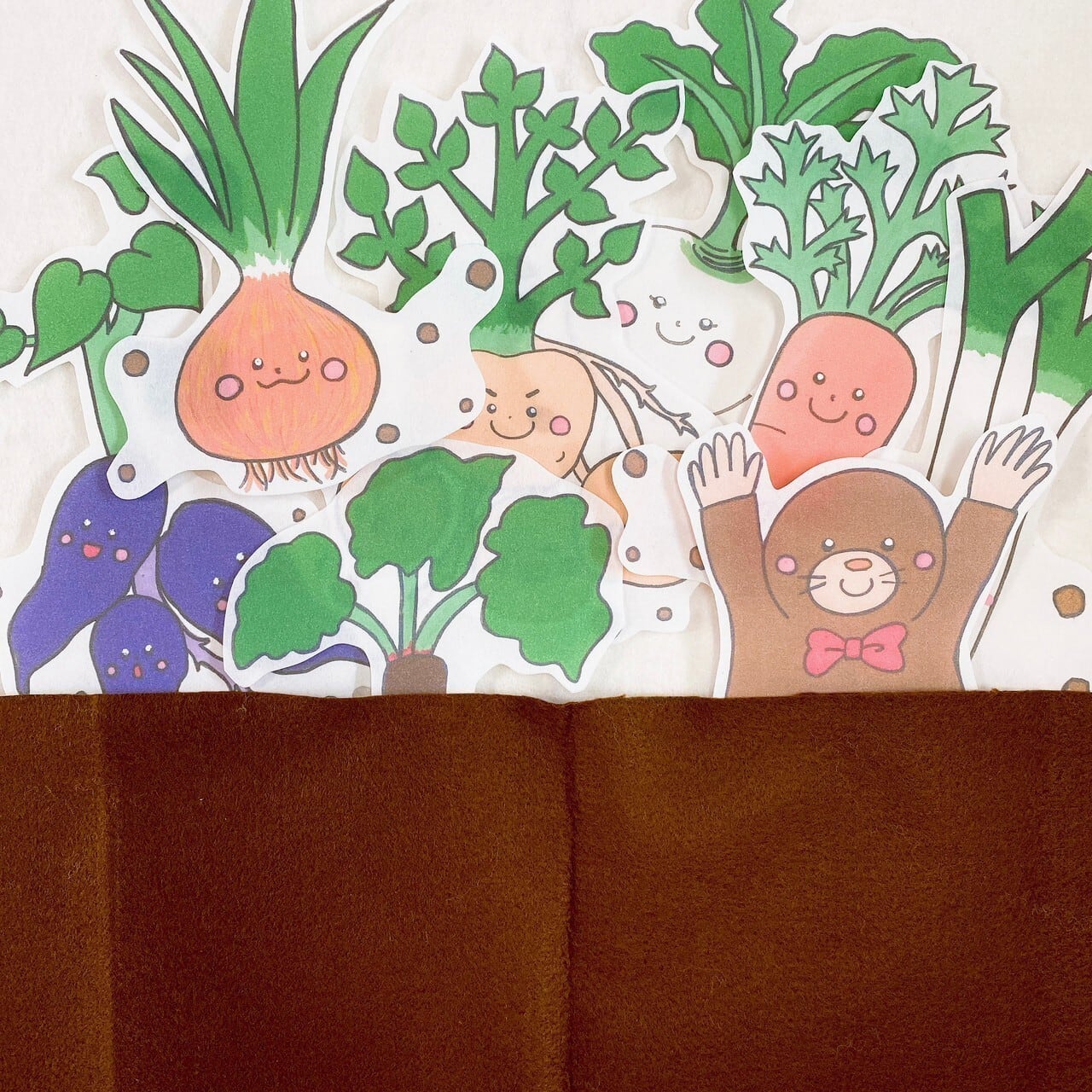 土のなかに隠れているお野菜を葉っぱで当てる、クイズになっています♡